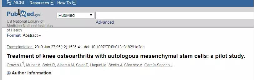 2013年,发表在《Transplantation》杂志上的临床试验显示,12名对传统治疗无敏感反应的慢性膝关节疼痛患者接受骨髓间充质干细胞治疗后,临床功能指数快速出现了逐步改善的迹象,其中11名患者的软骨质量得到了改善。这项临床试验表明,间充质干细胞有望成为慢性膝关节疼痛传统治疗的有效替代策略。这种疗法简单,患者无需住院或者手术便能缓解疼痛,并且还能显著提高软骨质量。