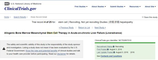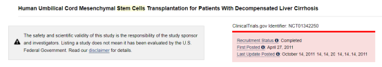 近年来,国内科研人员也在不断地探索干细胞治疗肝病的安全性和有效性,目前多项临床试验在开展中。根据clinicaltrials.gov统计的数据,国内34项临床试验登记在该系统,有些已完成,并且取得了一些积极的临床数据。
