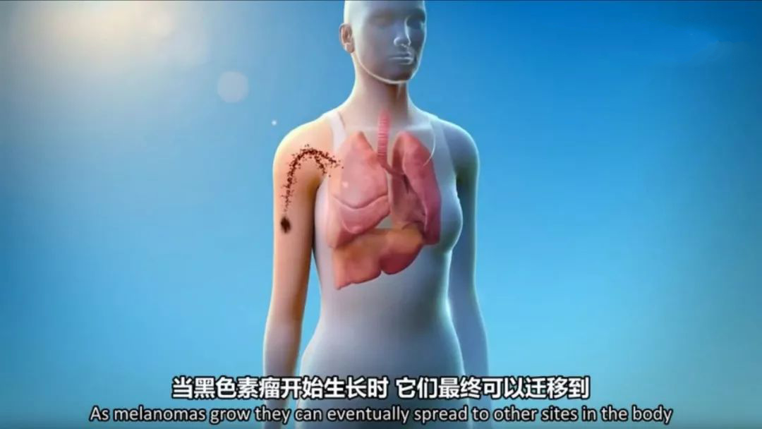从紫外线来的对黑素细胞的慢性损伤,其实就是导致一种皮肤癌——黑色素瘤的主要原因,当黑色素瘤开始生长时,它们最终可以迁移到身体中的其他位置,比如说肝和肺。