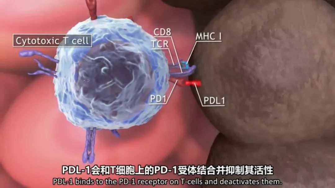 一些肿瘤细胞会高度表达诸如PDL-1这种抑制T细胞活性的分子,PDL-1会和T细胞上的PDL-1受体结合并抑制其活性,这就是免疫检查点。除此之外,肿瘤细胞还能吸引那些具有抑制其他免疫细胞功能的免疫细胞,以此来促进肿瘤的生长,这些免疫抑制的细胞包括了调节T细胞及其他特定类型的骨髓细胞。