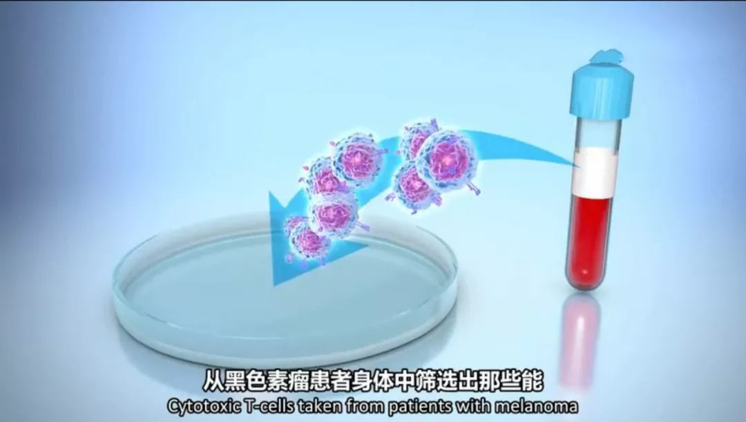一种方法便是过继细胞疗法,从黑色素瘤患者身体中筛选出那些能有效攻击肿瘤细胞的细胞毒性T细胞,最强的细胞毒性T细胞(经培养增殖后)会被重新注射回患者体内。用诸如白介素II和干扰素α的细胞因子来治疗,也能够加强患者体内抗肿瘤免疫细胞的活性。